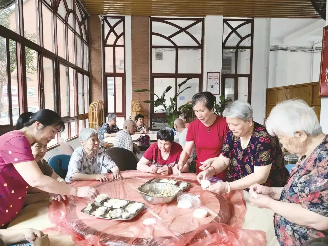在福鼎市的长者食堂,大家热情地包着饺子