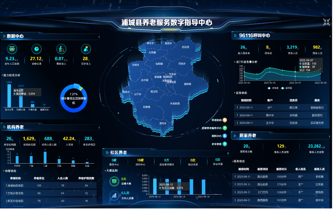 县级统筹建中枢,智慧养老更便捷。建成养老服务指导中心、失能失智照护中心、老年人医养结合中心三大阵地,规划建设占地50亩、500套老年公寓的浦开·幸福城颐养中心,打造具有浦城特色的持续照料退休社区。搭建智慧养老平台,开通“96116”服务热线和“浦城康养”小程序,实现服务供需精准对接,让老人“指尖一点,服务到家”。