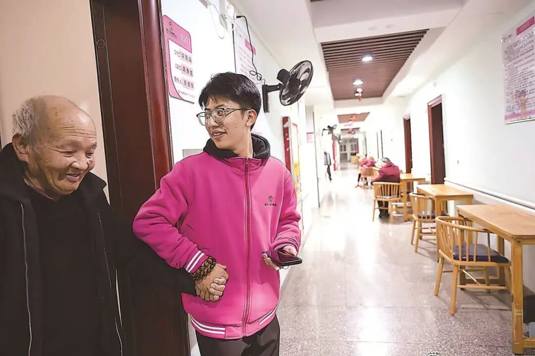 2024年,王子昊以实习生身份进入养老院,一年后正式入职。经过护理、营销、社工等多个岗位轮换后,他彻底打破了“养老只是喂饭擦澡”的刻板印象:老人如同老小孩,既需要生活照料,更渴望精神陪伴。