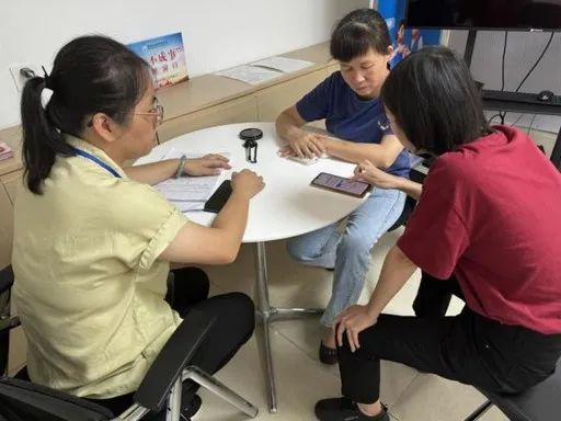 社区工作者为王洁(右二)提供心理疏导和就业规划服务
