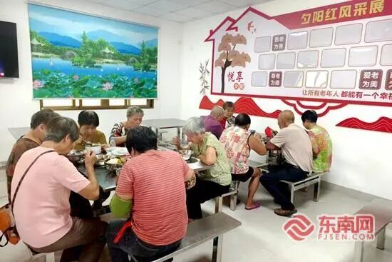 长者食堂的老人们正在就餐