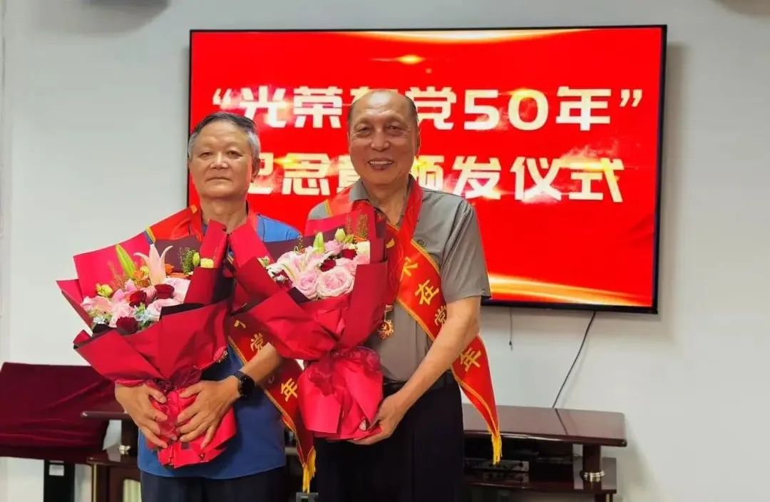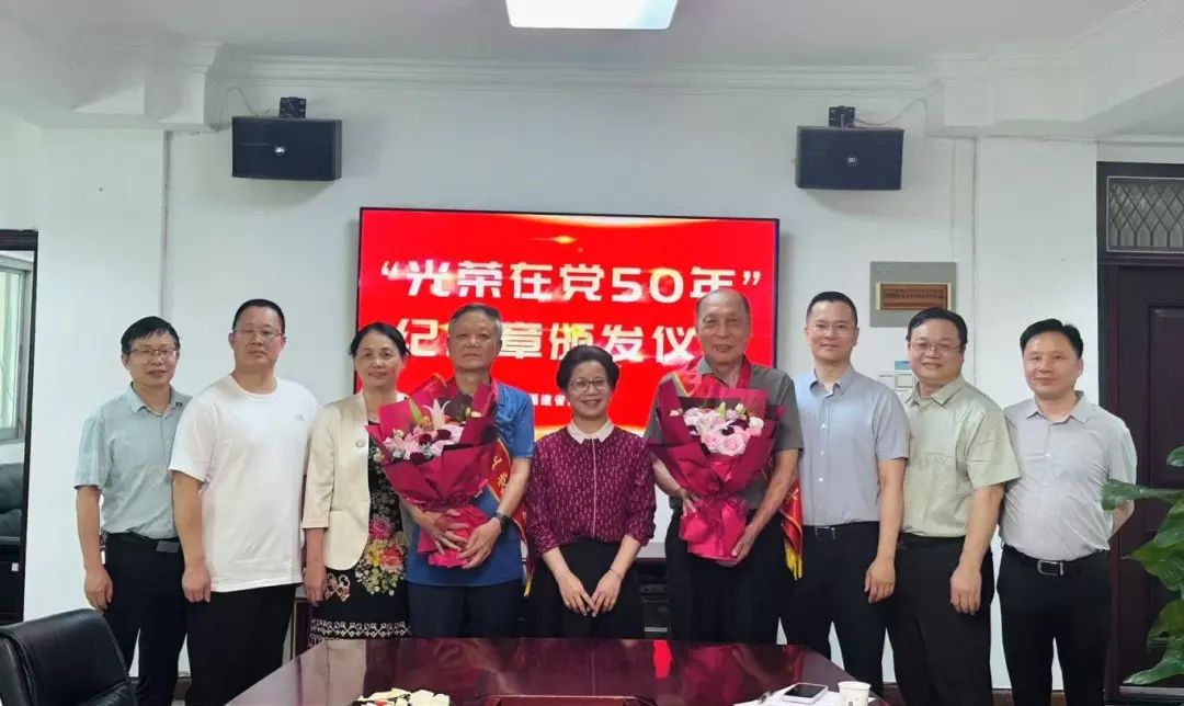 6月18日下午,省民政厅举行“礼赞光荣在党路 薪火相传谱新篇”——“光荣在党50年”纪念章颁发仪式。向党龄满50年的老党员罗万荷、徐小榕致以崇高敬意。