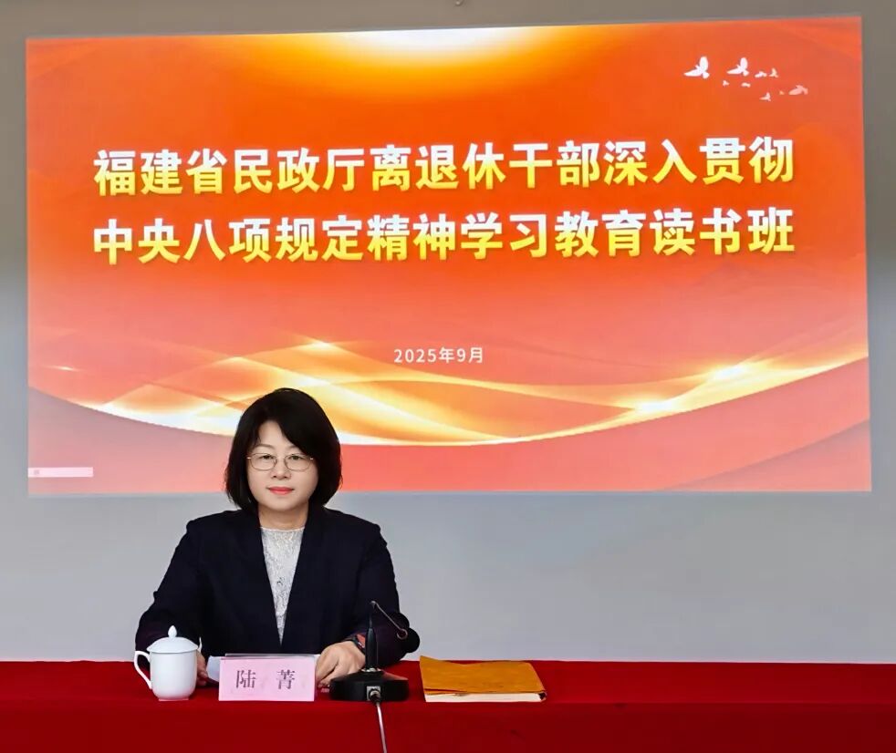 为巩固拓展学习教育成果,锲而不舍落实中央八项规定精神,推进作风建设常态化长效化,9月1日至5日,省民政厅在福州鼓岭举办离退休干部专题读书班。厅党组书记陆菁出席并讲授专题党课,厅党组成员、副厅长陈丽华主持会议。