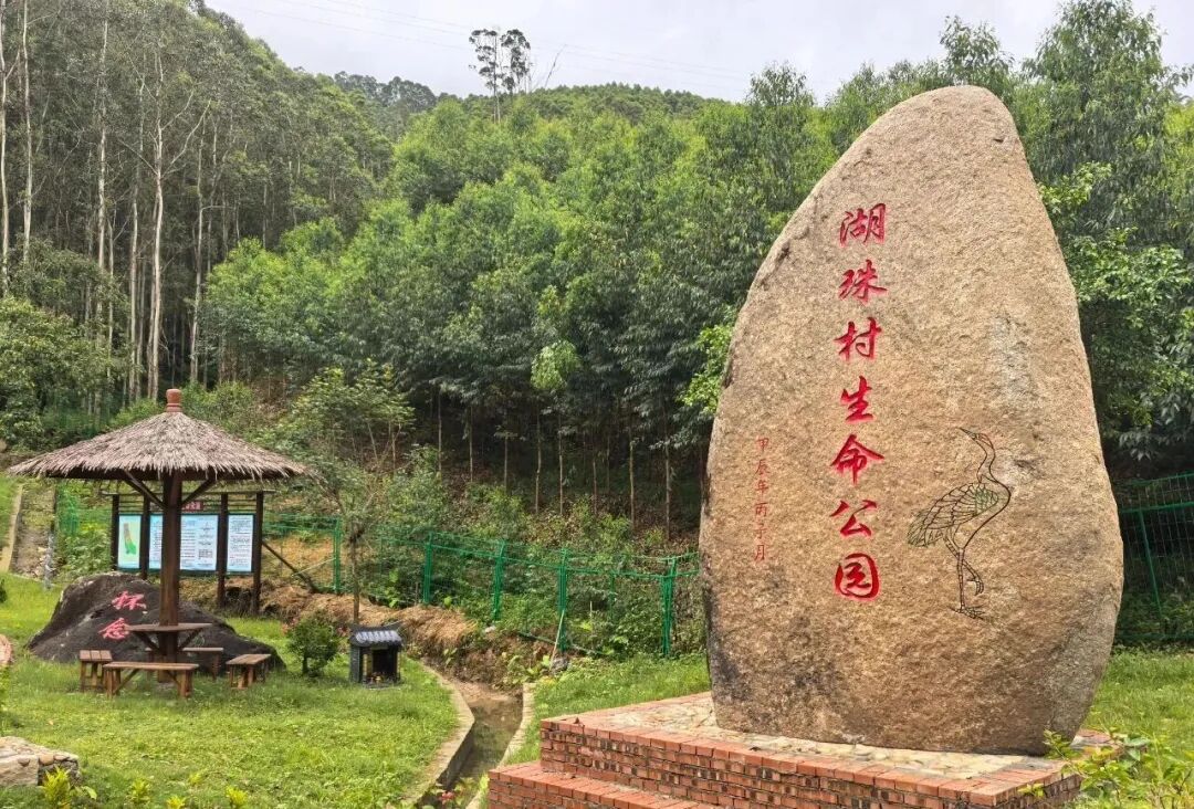 如今,湖珠村生命公园已成为村民祭扫首选。公园内,占地不到0.4平方米的“生命里程碑”斜卧草地,与花草树木相得益彰。村民陈阿英的家人感慨:“生命公园既环保又节地,让亲人安息在熟悉的环境中,我们很安心。”