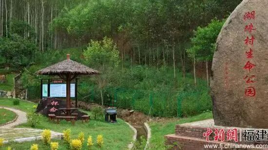 漳州市长泰区岩溪镇湖珠村利用荒山坡地建成生命公园,园内草木葱茏,路径整洁,环境清幽自然,图为湖珠村生命公园。