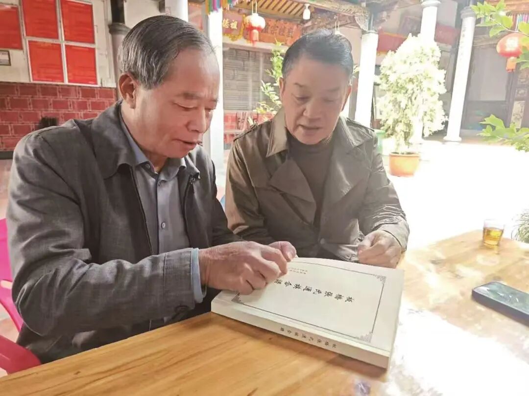 张国琳(右)与张文总在查看族谱
