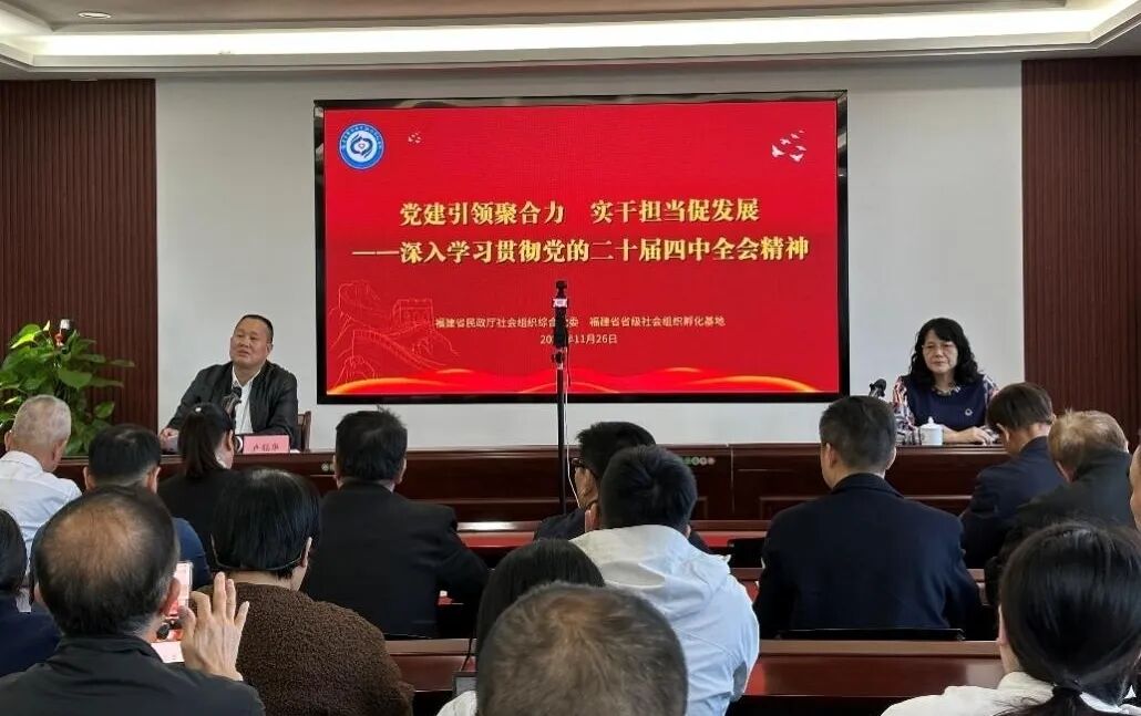 为深入学习贯彻党的二十届四中全会精神,进一步提升社会组织以高质量党建引领高质量发展的政治素养和实践能力,2025年11月26日下午,省民政厅社会组织综合党委与省级社会组织孵化基地联合举办专题培训及座谈会。来自综合党委所属6个党建工作片区、入驻孵化基地及其他部分社会组织的负责人近50人参加活动。