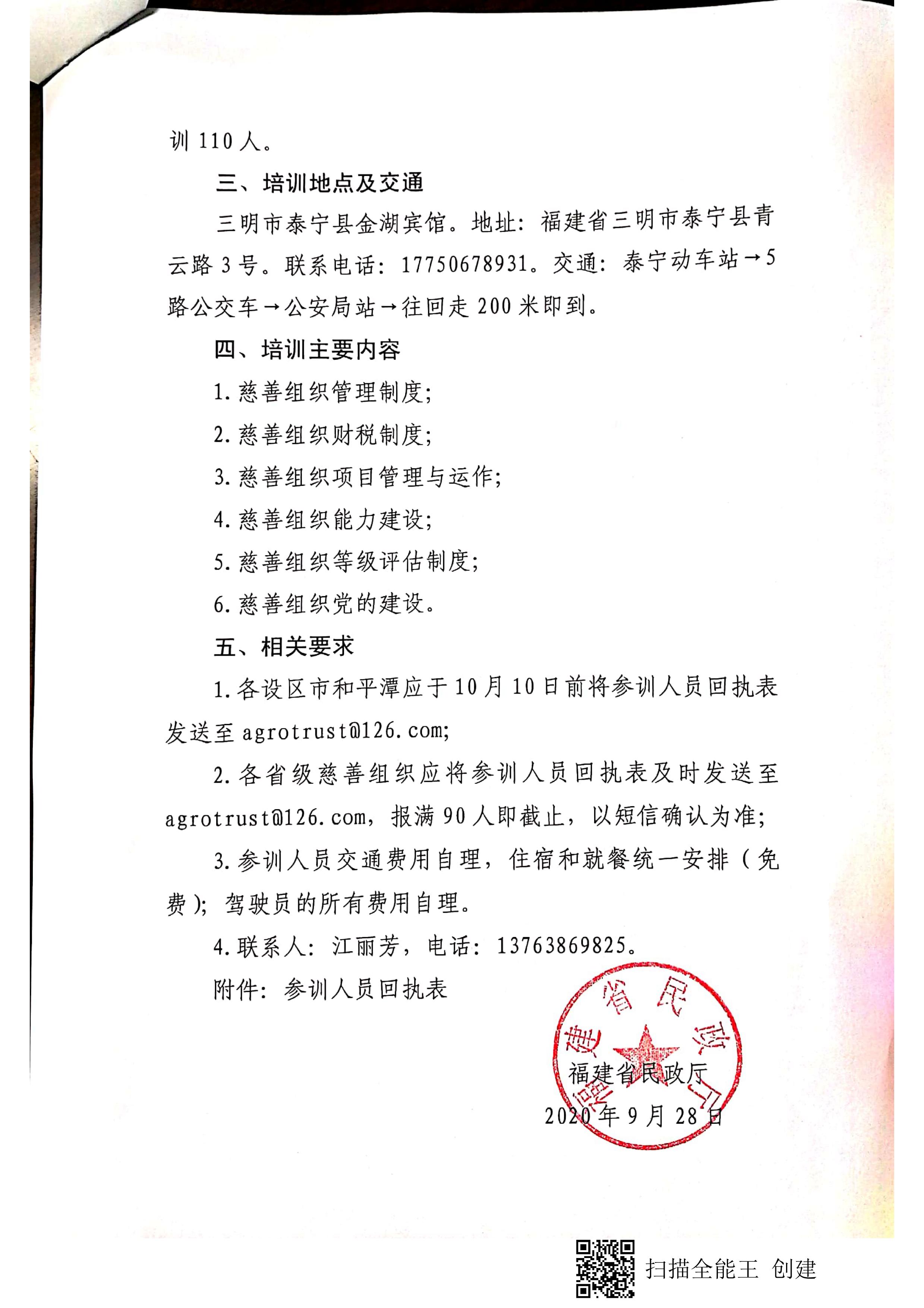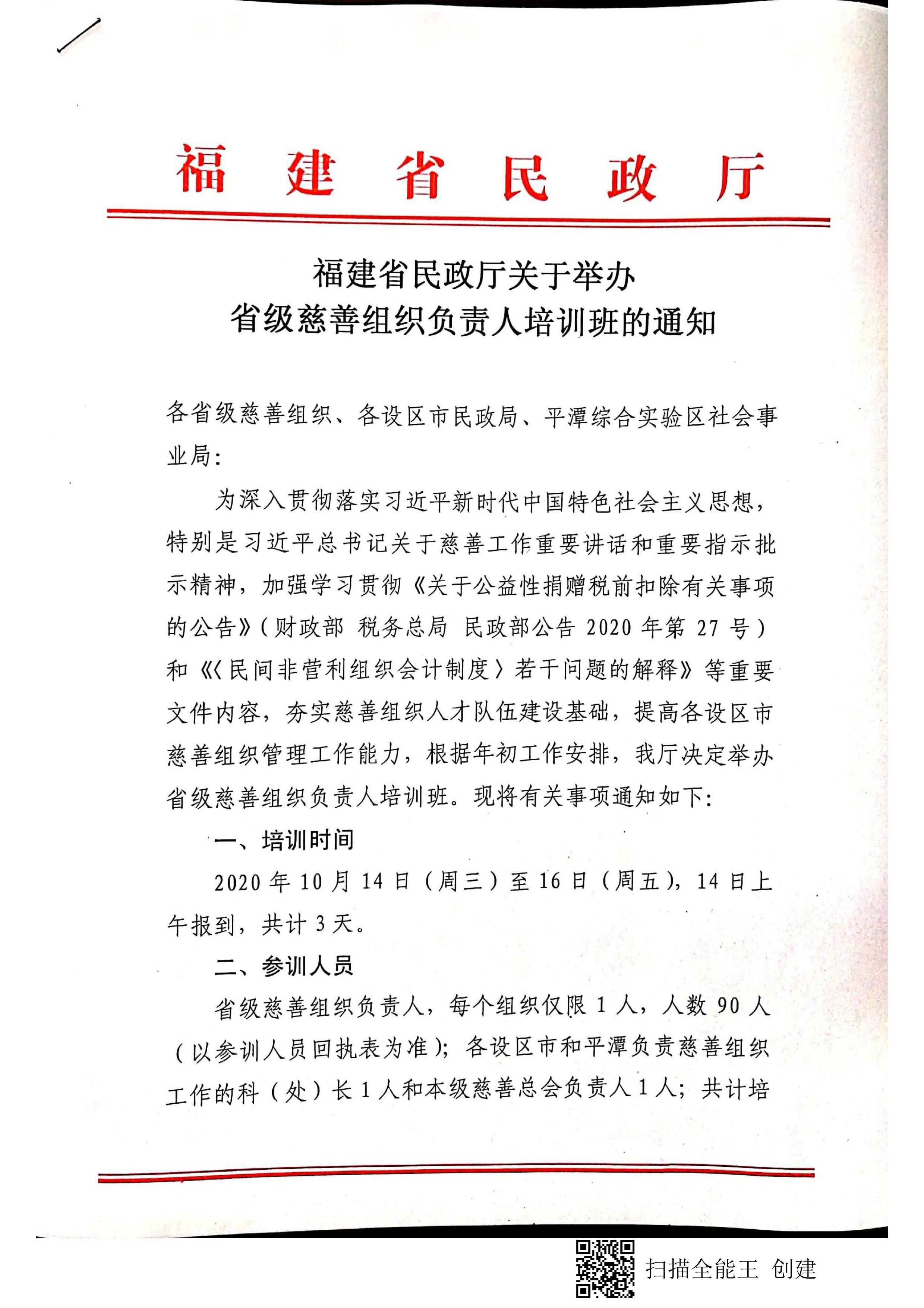 福建省民政厅关于举办省级慈善组织负责人培训班的通知