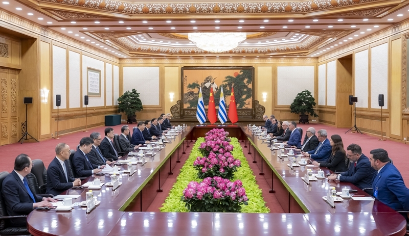 习近平强调,中乌两国要继续坚定支持彼此核心利益和重大关切,密切各层级、全方位友好交往,加强治国理政经验交流,不断深化战略互信。中共二十届四中全会通过“十五五”规划建议,为未来5年中国经济社会发展擘画蓝图,也为包括乌拉圭在内的各国提供更多机遇。双方要加强发展战略对接,深化经贸、金融、农牧业、基础设施建设、信息通信等合作,挖掘绿色发展、数字经济、人工智能、清洁能源等新兴领域合作潜力,推动经济增长转型升级。中国和乌拉圭人民有着天然亲近感,双方要持续深化文化、教育、体育、媒体、地方等交流,便利人员往来,促进民心相通。
