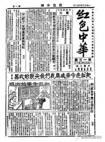 中央苏区机关报《红色中华》刊影,图片展示的是第100期头版。