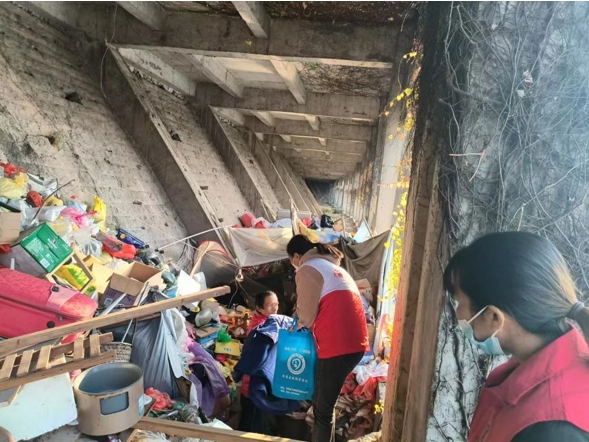 针对经反复劝说仍不愿进站接受救助的流浪乞讨人员,外展服务队为其发放食品、棉衣、棉被等生活物资及爱心救助卡,叮嘱其要注意夜间安全和防寒保暖,有需要随时打电话求助,同时将相关情况第一时间通报乡镇相关部门,持续做好跟踪劝导工作。