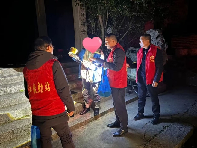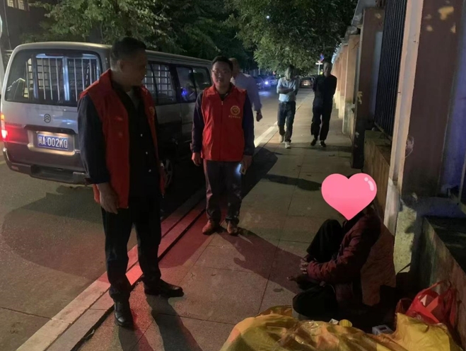 当晚,工作人员沿莲荷路、玉荷路,文山路一路巡查,在公园市场、桥梁涵洞、银行ATM机房、在建工地等可能露宿区域寻找流浪乞讨人员,当巡查至城中村某寺庙门亭时,发现有疑似流浪乞讨人员生活痕迹,可在附近却未发现人,工作人员扩大范围寻找,于凌晨1时许在路口与其相遇。经询问,该男子为江西吉安人,平时在工地打零工,闲时捡拾一些纸皮贴补费用,工作人员耐心劝导他进站接受救助,但他摆摆手,表示不愿进站,随后离开。然而工作人员却放心不下,跟随其身后到达露宿点,送上食品和联系卡,嘱咐他如遇到困难要及时打电话向救助站求助。