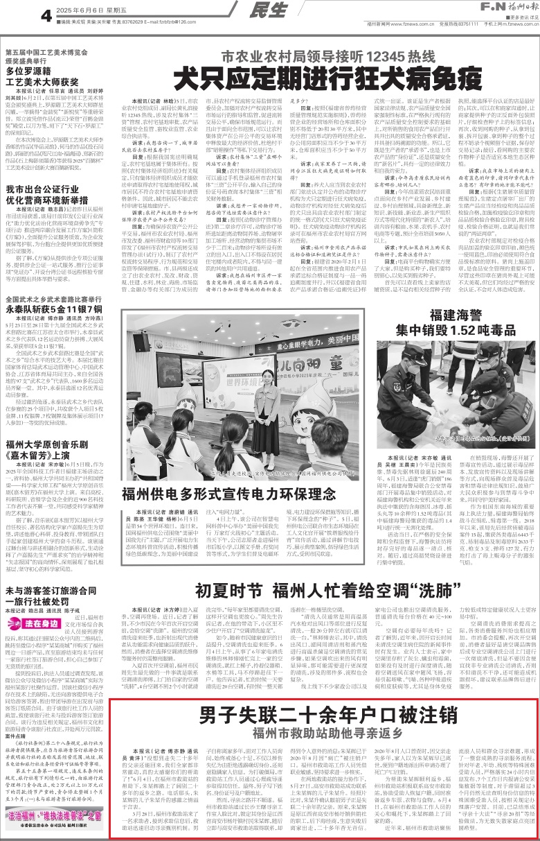 近年来,福州市救助站聚焦流浪人员和群众寻亲难题,形成了一整套成熟的寻亲服务流程。针对年老、年幼、残疾等特殊困难受助人员,严格落实24小时内信息发布、7个工作日内报请公安采集数据等制度,对于滞留超过3个月仍然无法查明身份信息的特殊困难受助人员,按相关规定办理落户安置。目前,已总结形成“寻亲十大法”“寻亲20招”等经验做法,为无数失散家庭点亮团圆希望。