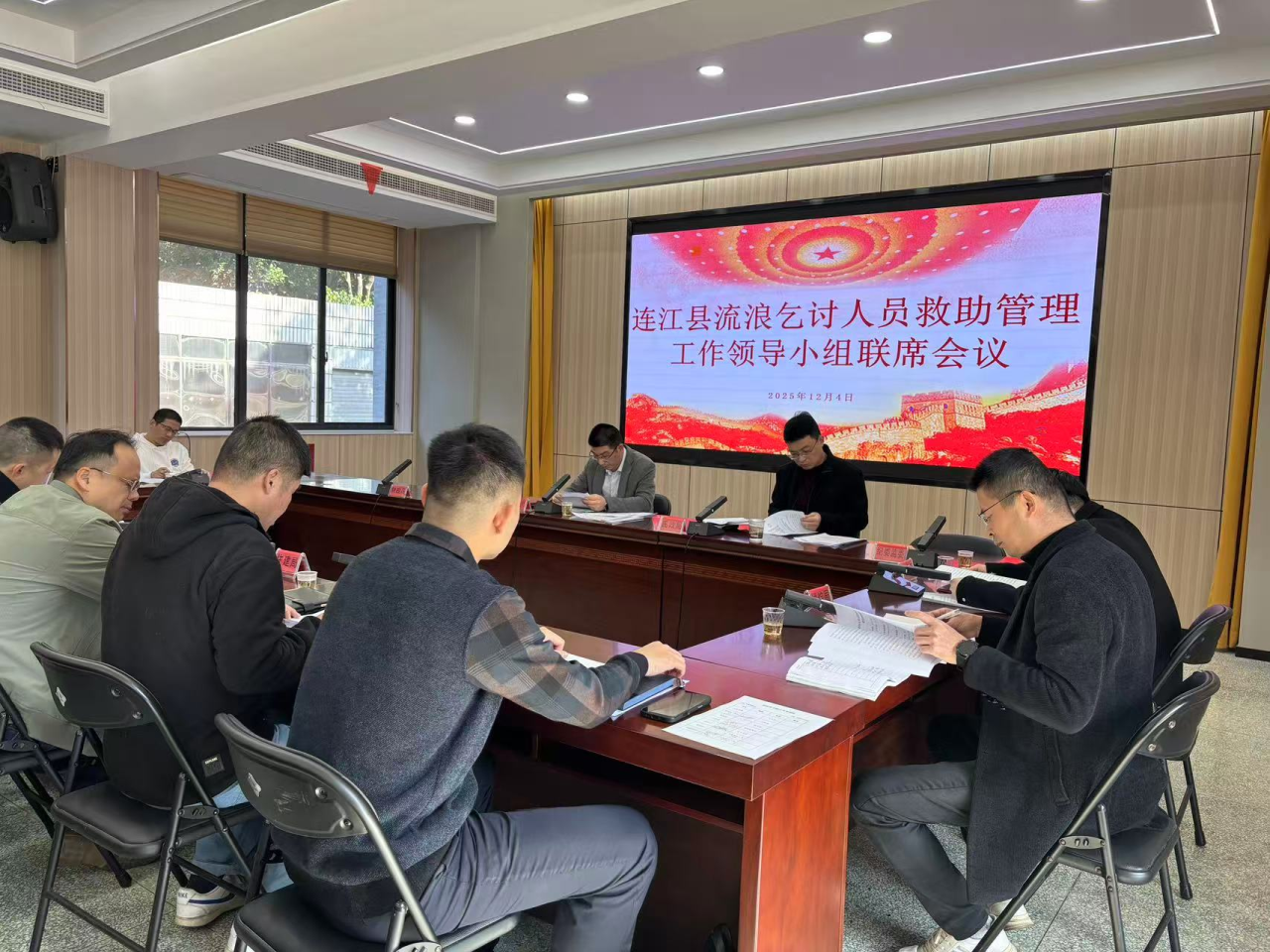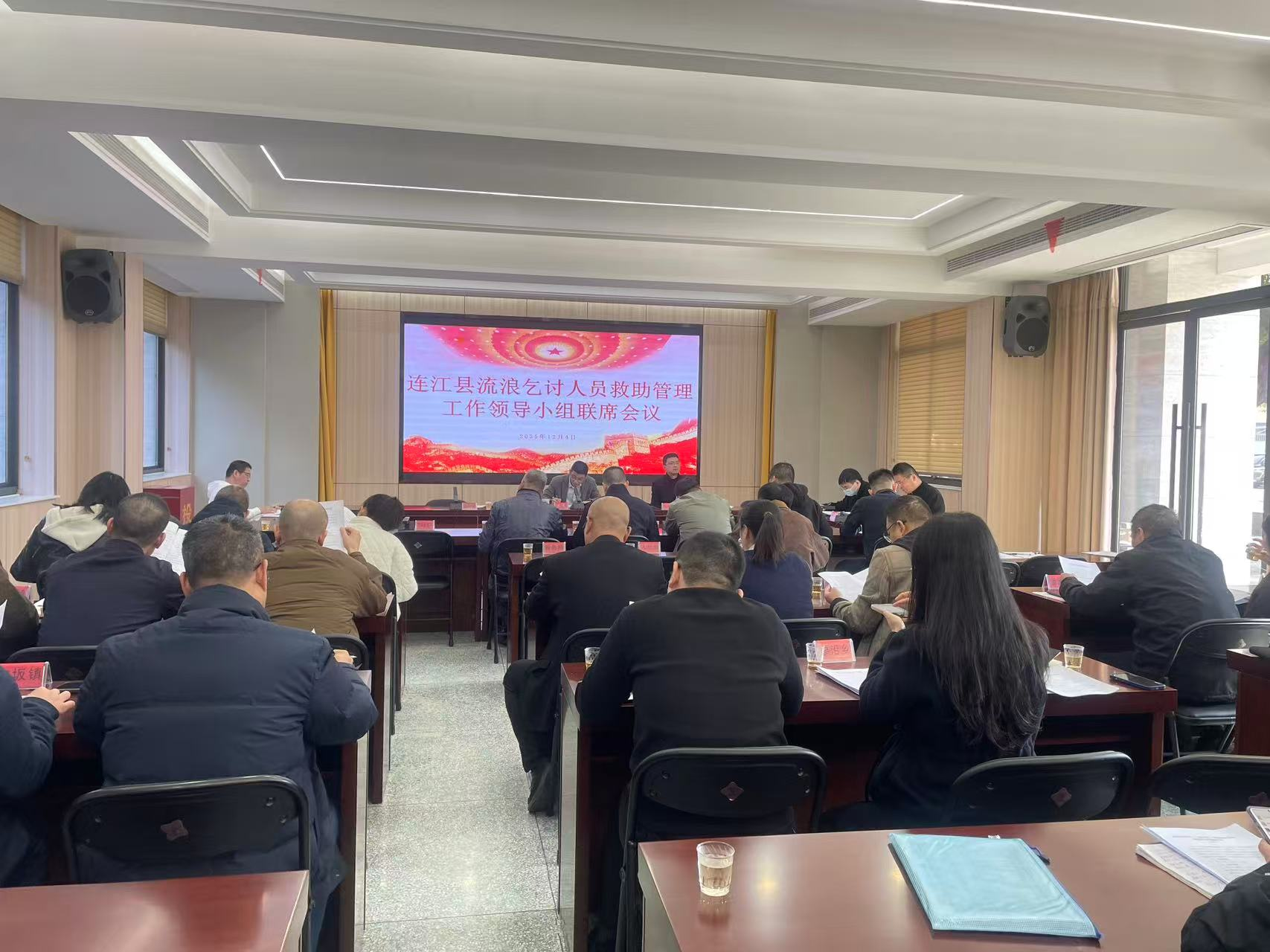 12月4日上午,连江县流浪乞讨人员救助管理工作领导小组联席会议顺利召开。会议全面总结了2025年全县流浪乞讨人员救助工作成效,分析当前形势,研究工作中存在的问题,部署下一阶段工作。县联席会议总召集人、县政府副县长陈贺光主持会议并做重要讲话。各乡镇分管领导及县委政法委、县委宣传部(网信办)、公安局、民政局、卫健局、城综局、住建局(园林中心)等成员单位相关负责人参加会议。
