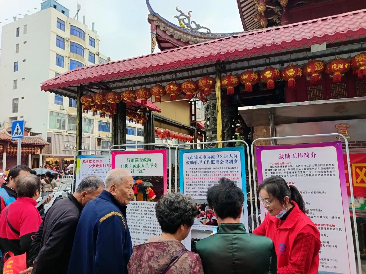 “以后遇到需要帮助的人,我一定主动联系你们!”12月3日,在市救助站“寒冬送温暖”专场宣传活动上,市民们在听完救助案例、政策宣讲后,参与救助的热情愈发高涨。专项行动期间,莆田市救助机构积极拓展“政府主导+部门协作+社会参与”模式,在积极联动公安、城管、卫健等有关部门基础上,进一步通过建立共建机制、广泛开展宣传活动等方式,发动环卫工人、邮政快递员、爱心志愿者等社会力量担任“民生探头”,形成“发现—报告—救助”闭环机制,让救助服务更精准、更及时、更有温度。如11月2日晚,志愿者在文献东路发现一名患阿尔茨海默症的走失老人,荔城区救助站接到线索报告后迅速抵达现场,并联动公安部门通过人脸识别,成功联系到老人家属,平安将老人护送回到了心急如焚的家人身边。