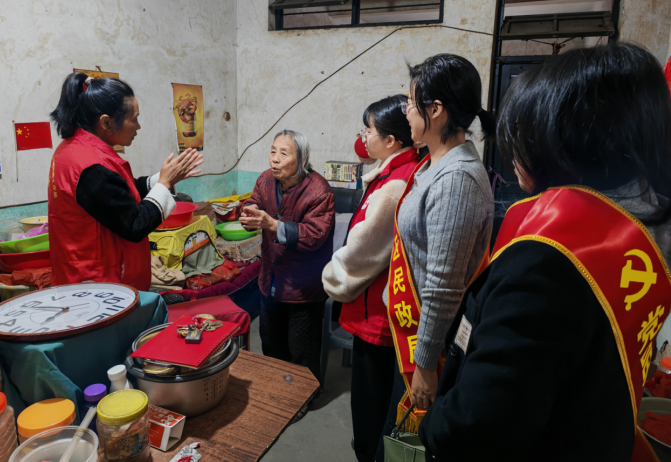 新罗区民政局组建“津彩有我 爱在民政”党员志愿服务队,寒潮来袭时深入红坊镇挂钩困难家庭,送上棉被、大米等御寒物资,细致检查房屋防火安全,关切询问身体状况与生活难题,用“铁脚板”筑牢民生底线。