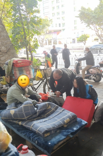2026年初,气温走低,兰大爷年事已高、身体健康状况堪忧且不慎被电动车撞伤。此时,他再露宿街头存在着极大的安全隐患。为此,泉州市救助站联合丰泽区民政局启动专项救助行动,工作人员与社工多次前往露宿点,拉家常、送物资、讲政策,最终赢得老人信任,兰大爷终于愿意接受政府的救助了。