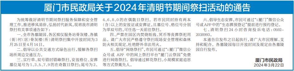 厦门最新通告!事关清明