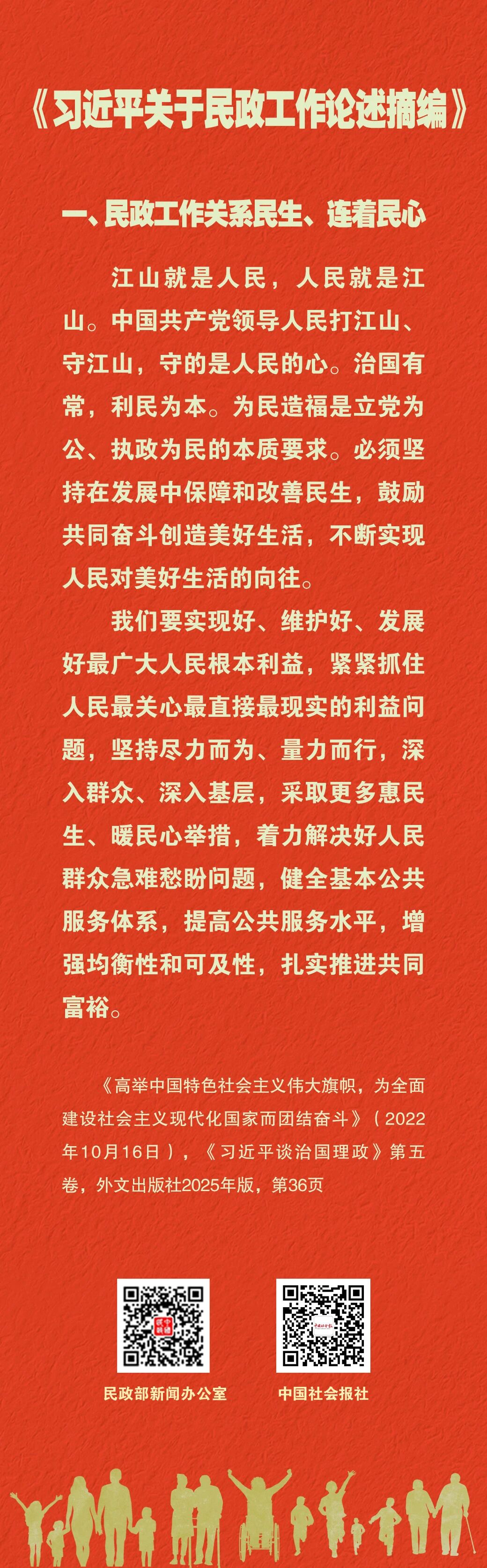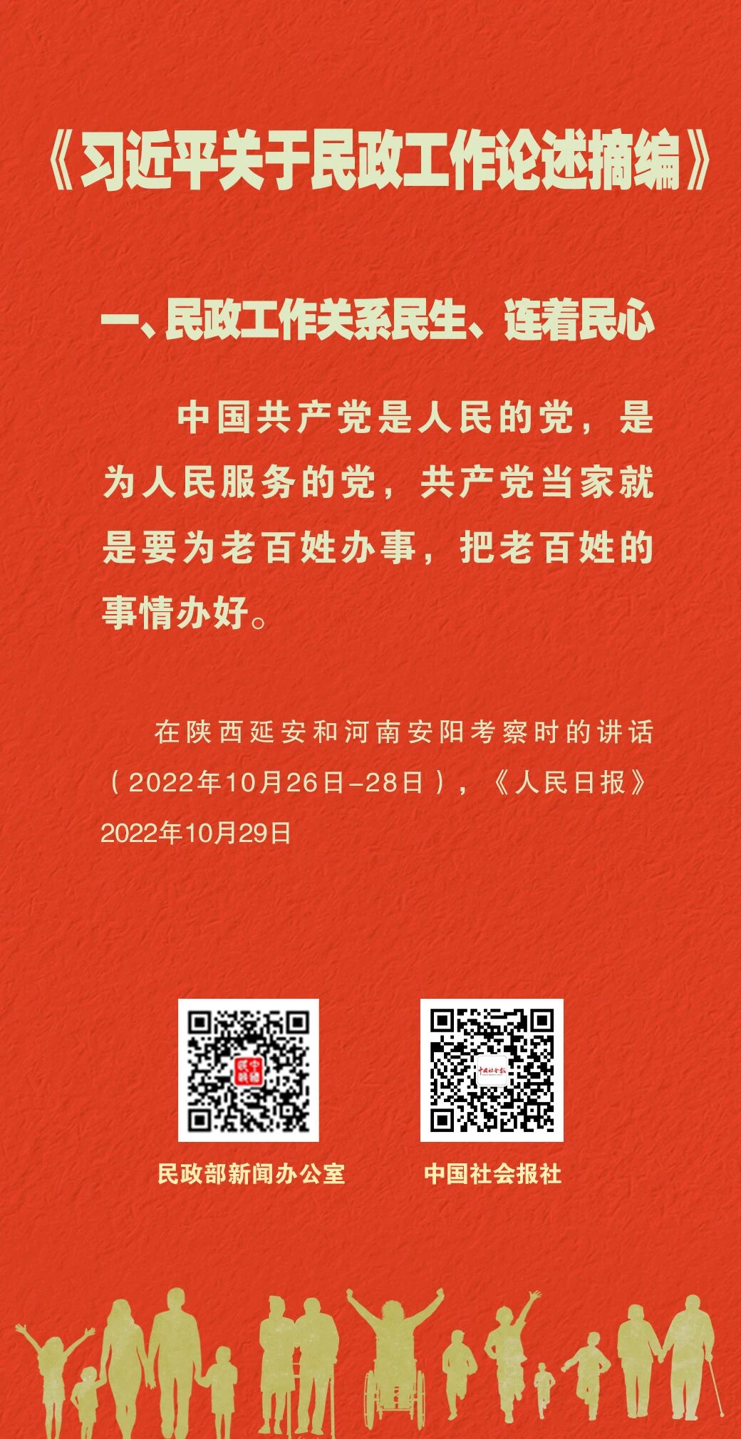 《习近平关于民政工作论述摘编》(以下简称《论述摘编》)已出版发行。《论述摘编》全面反映习近平总书记对新时代民政工作的深邃思考和重大部署,为深入学习领会习近平总书记重要论述提供了权威读本和最新教材。