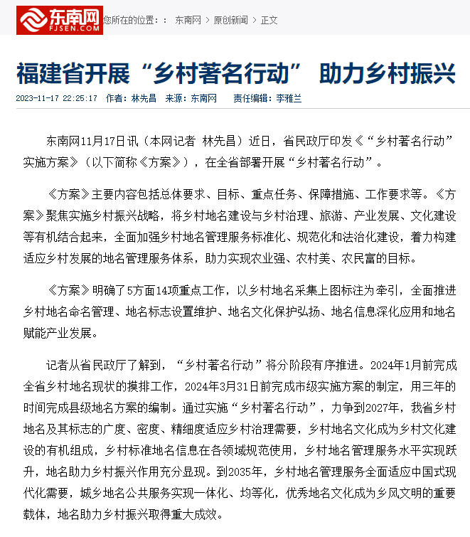 东南网 | 福建省开展“乡村著名行动” 助力乡村振兴