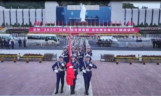 三坊七巷消防救援站指战员护送国旗前往旗台。