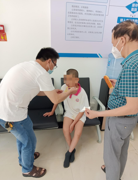 救助站工作人员在进行入站登记测体温时发现该儿童还发高烧,马上将其送至市医院救治,由于该儿童语言行为都有障碍,无法进行沟通,工作人员费尽心思才让儿童得到治疗。