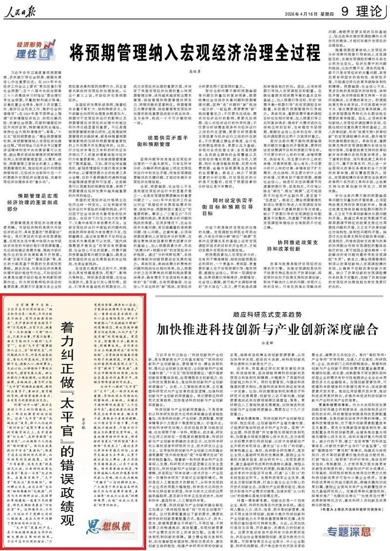 让四平八稳的“太平官”不“太平”,是一场涉及机制重塑、导向校准与思想洗礼的整体战、系统战。关键在于旗帜鲜明地落实“三个区分开来”,通过制度化的边界界定为改革创新者、踏实肯干者、默默奋斗者鼓劲撑腰,让只想当官不想干事、只想揽权不想担责、只想出彩不想出力的庸官没有市场。完善政绩考核评价体系,将考核的准星从“材料留痕”真正转向“实效至上”,通过差异化考评和穿透式评估,让滥竽充数者失去市场,让勇于破冰者站上舞台,真正实现凭实绩排座次、以实干论英雄。特别需要指出的是,唯有将造福人民的价值基准深深嵌入灵魂,使之成为超越“守摊子”心态的精神坐标,广大领导干部方能在各种风险交织与利益博弈面前,真正涵养“功成不必在我”的精神境界,扛起“功成必定有我”的责任担当。